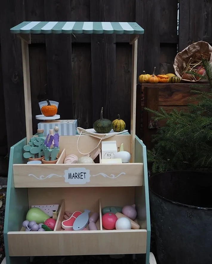 Odkryj uroczy drewniany sklep z bogatym wyposażeniem. Idealny do interaktywnej i kreatywnej zabawy.
