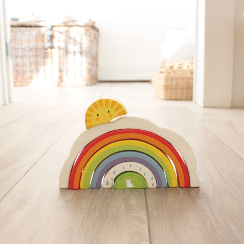 Drewniana Tęcza, Tender Leaf Toys Kreatywna zabawka dla najmłodszych! Drewniana tęcza to 6 kolorowych łuków, które po złożeniu tworzą tęczę. Z elementów można również zbudować tunele i mosty, kołysanki dla figurek czy ogrodzenie dla zwierzątek i wiele innych konstrukcji przestrzennych! Wyobraźnia dziecka nie zna granic! Tęczowy tunel będzie również wyjątkową ozdobą w pokoiku dziecięcego. Wspaniała…