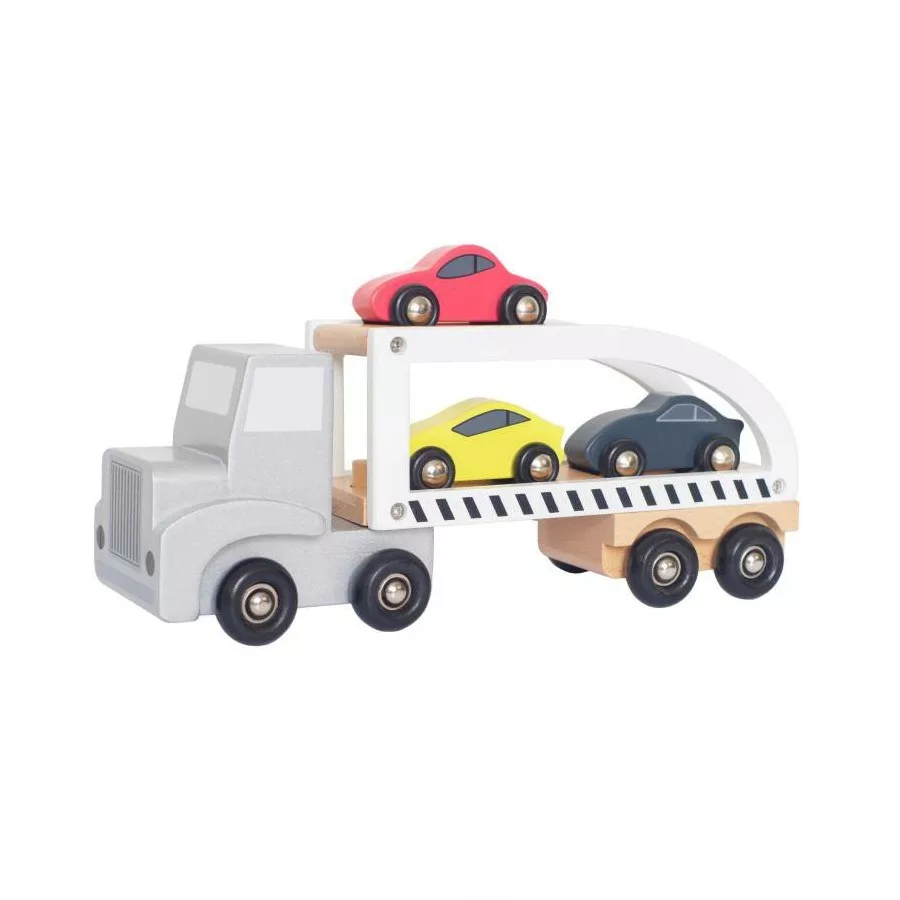 Odkryj drewnianą lawetę z 3 wyścigówkami Jabadabado. Kreatywna i edukacyjna zabawa w jednym! Idealny prezent dla małych pasjonatów motoryzacji.