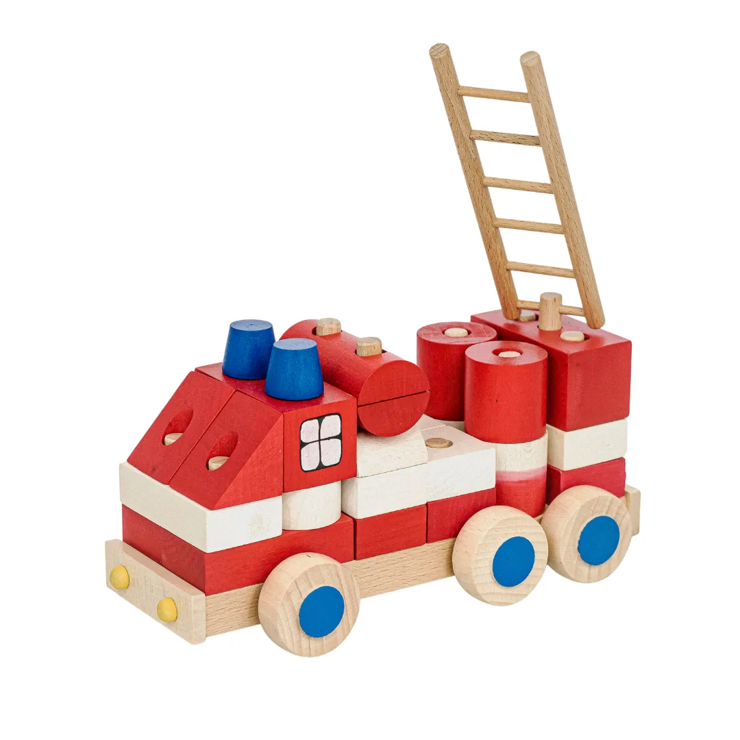Drewniany wóz strażacki z klocków, Tarnawa Toys