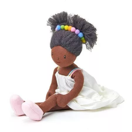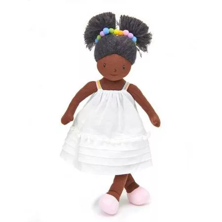 Urocza, mięciutka, bawełniana lalka Esme będzie idealną przyjaciółką do zabaw. Poznaj Esme – śliczną laleczkę lubiącą się bawić i żartować! Esme ubrana jest w białą, zwiewną sukienkę na tęczowych ramiączkach oraz różowe buciki. Ma czarne włosy zawiązane kolorową gumką w dwa kucyki. Lalka Esme jest mięciutka – idealna do przytulania i kochania. Uwielbia żartować oraz malować z przyjaciółmi! Boi się pająków.