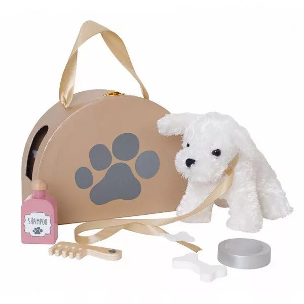 Piesek jest tak śliczny i milutki, że nie sposób go nie pokochać, przytulać i głaskać. Uroczy szczeniaczek dostarczy każdemu właścicielowi dużo radości i miłości. Na króciutkiej smyczy możesz wyprowadzić psa na spacer, a gdy się zmęczy z łatwością schowasz go do stylowej torebki. Jeśli Wasz pupil pobrudzi się na spacerze, a wiemy że psy to lubią – w zestawie mamy butelkę szamponu do kąpieli, oraz grzebyk do rozczesywania i pielęgnacji psiej sierści. Pamiętajmy także, o karmieniu swojego nowego pupila:)